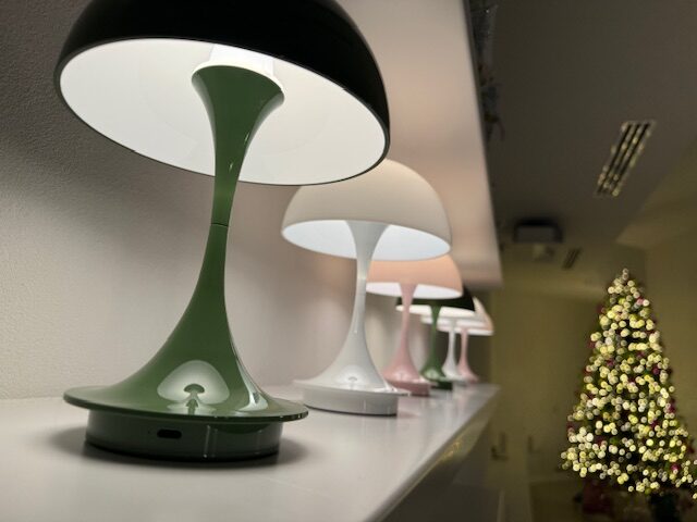 今年のハッピーホリデーズは、館内にルイスポールセン『パンテラ160』を飾り、特別なあたたかさと北欧モダンな雰囲気を演出しています。パンテラ160の向こうには、約3メートルのクリスマスツリーもございます。